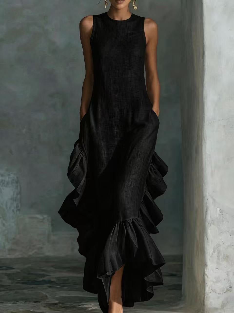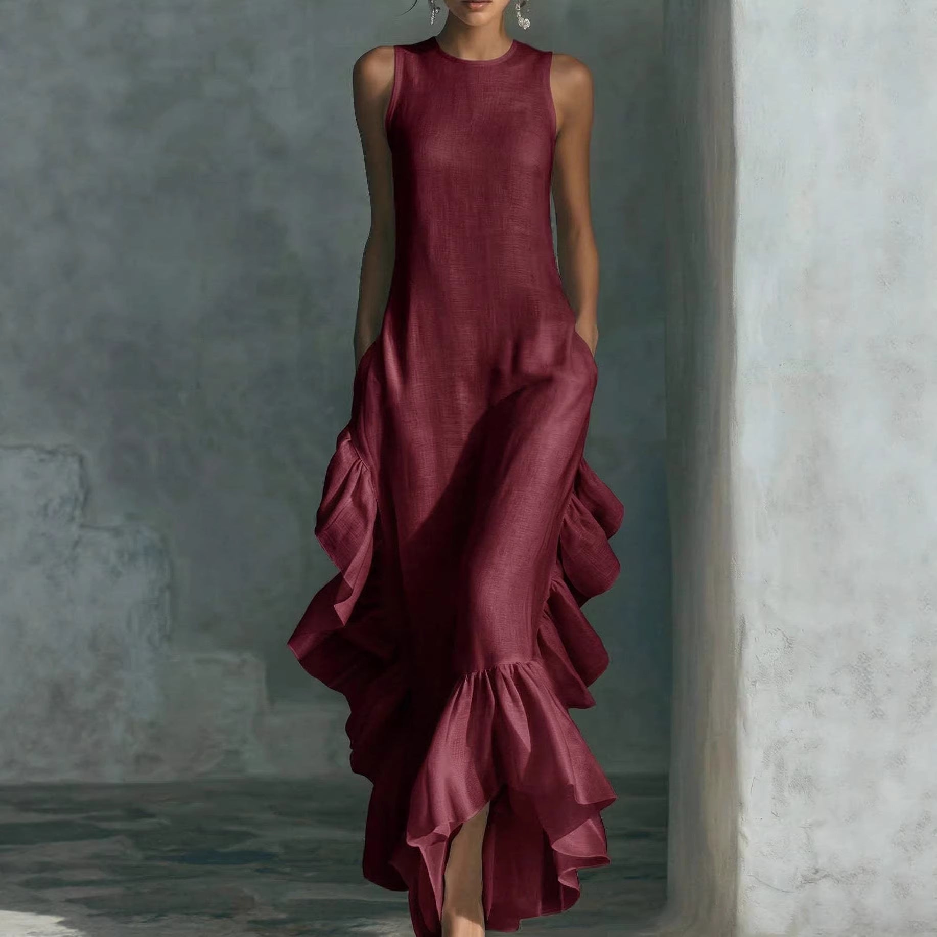 Elevate your effortless elegance with our Sleeveless Ruffled Linen Maxi Dress—a timeless piece designed for the modern woman who values comfort, style, and versatility. Crafted from premium breathable linen fabric, this dress balances minimalist sophistication with playful ruffled details, making it perfect for sun-soaked getaways, beachside dinners, or casual-chic daytime events.
