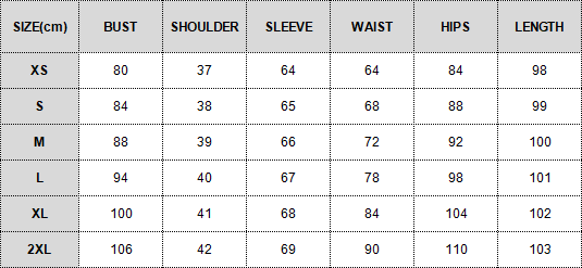 Size chart: