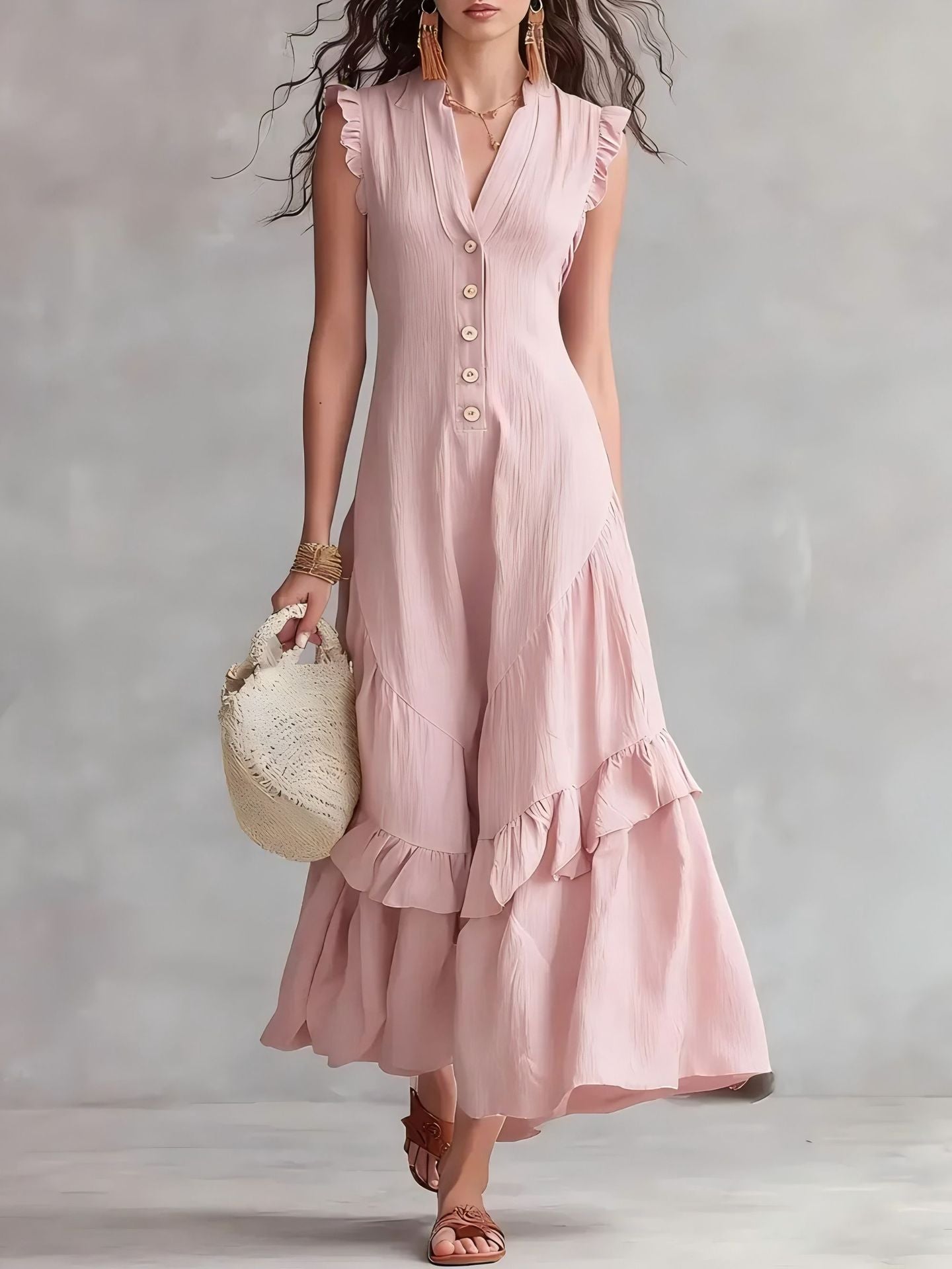 Women's Minimalist Athletic-Style Sleeveless Henley Maxi Dress