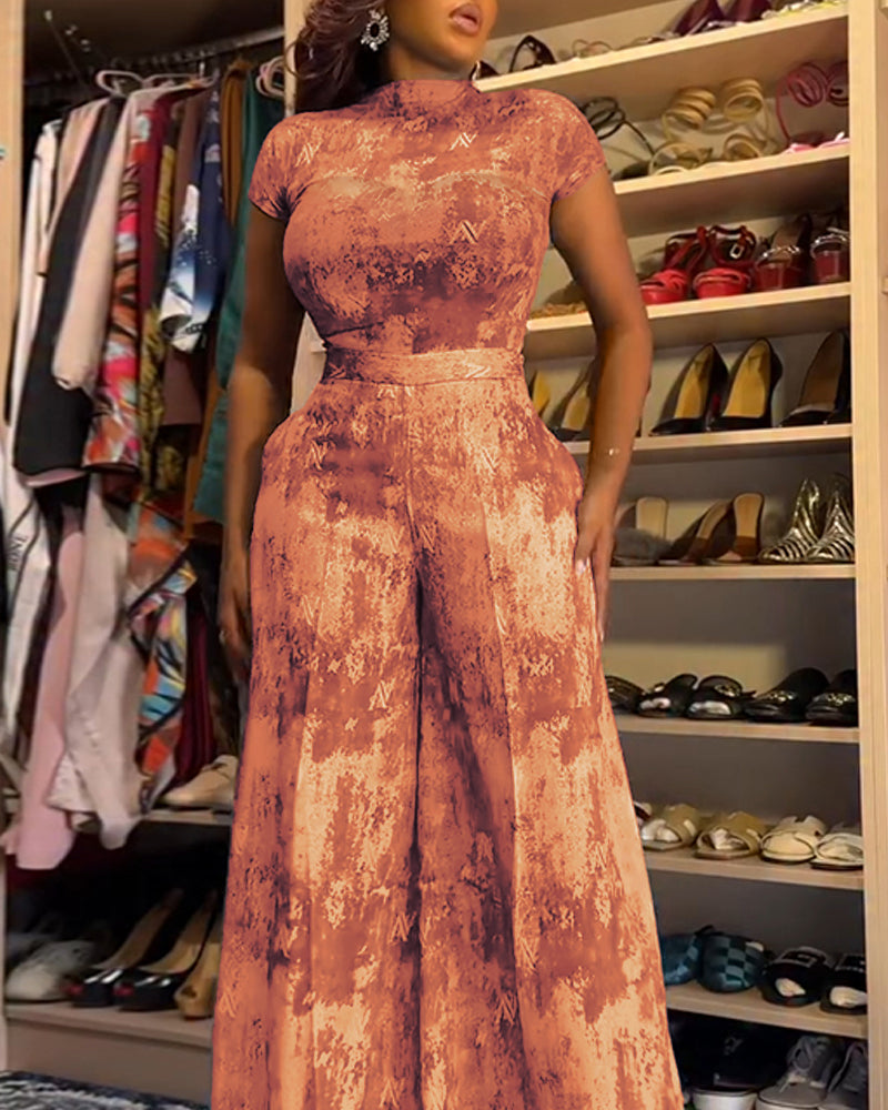 Silhouette & Fit:Slim fit mock neck short sleeve top paired with high-waist wide leg pants creates a clear “fitted top, relaxed bottom” silhouette. Elastic back waist improves flexibility, visually defines the waist, and flatters a wide range of body shapes.