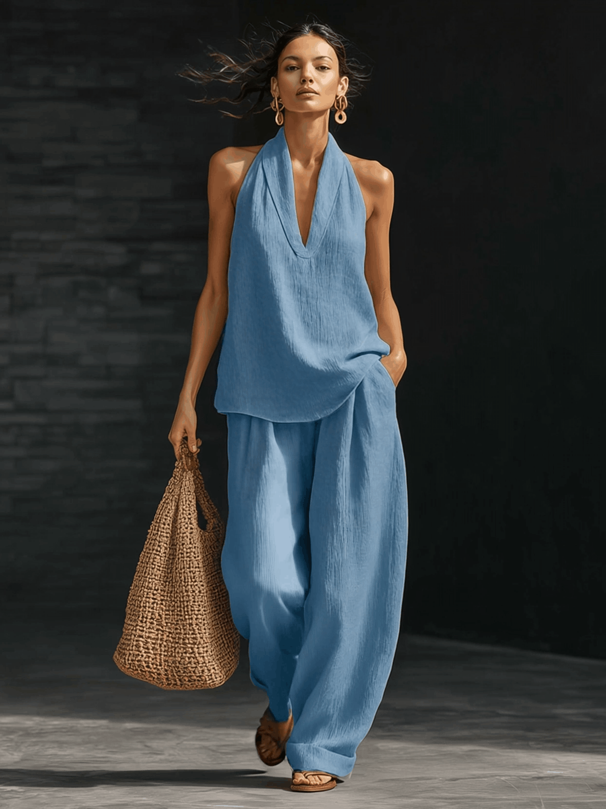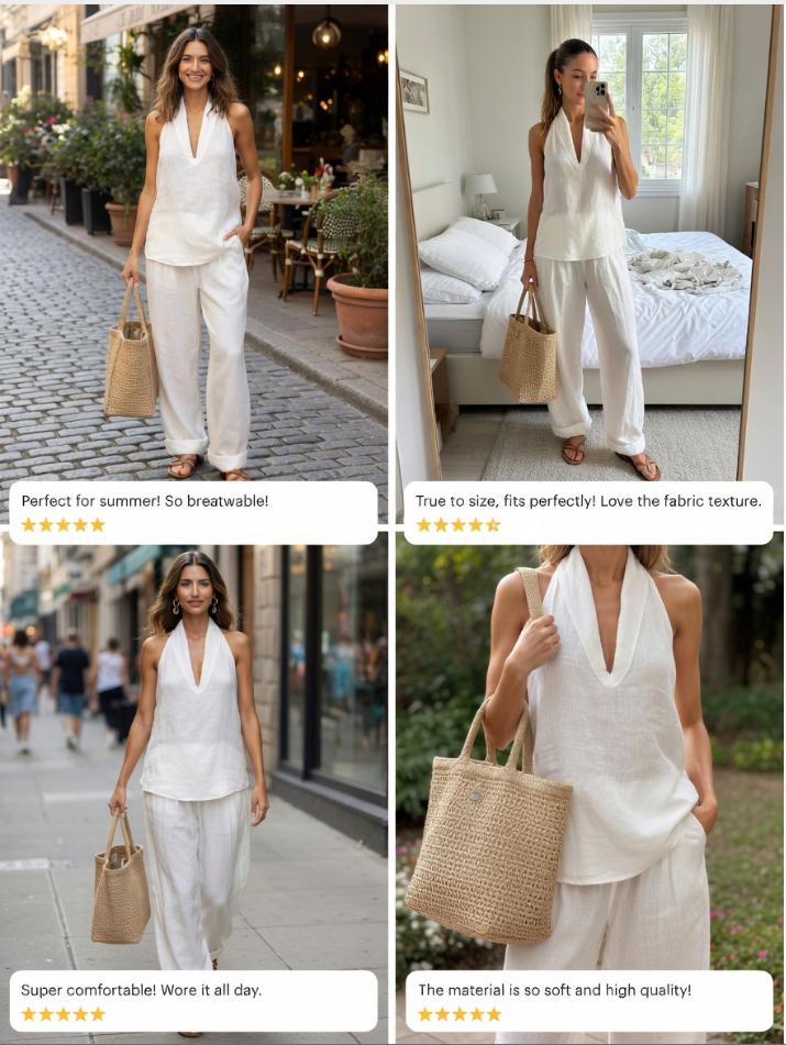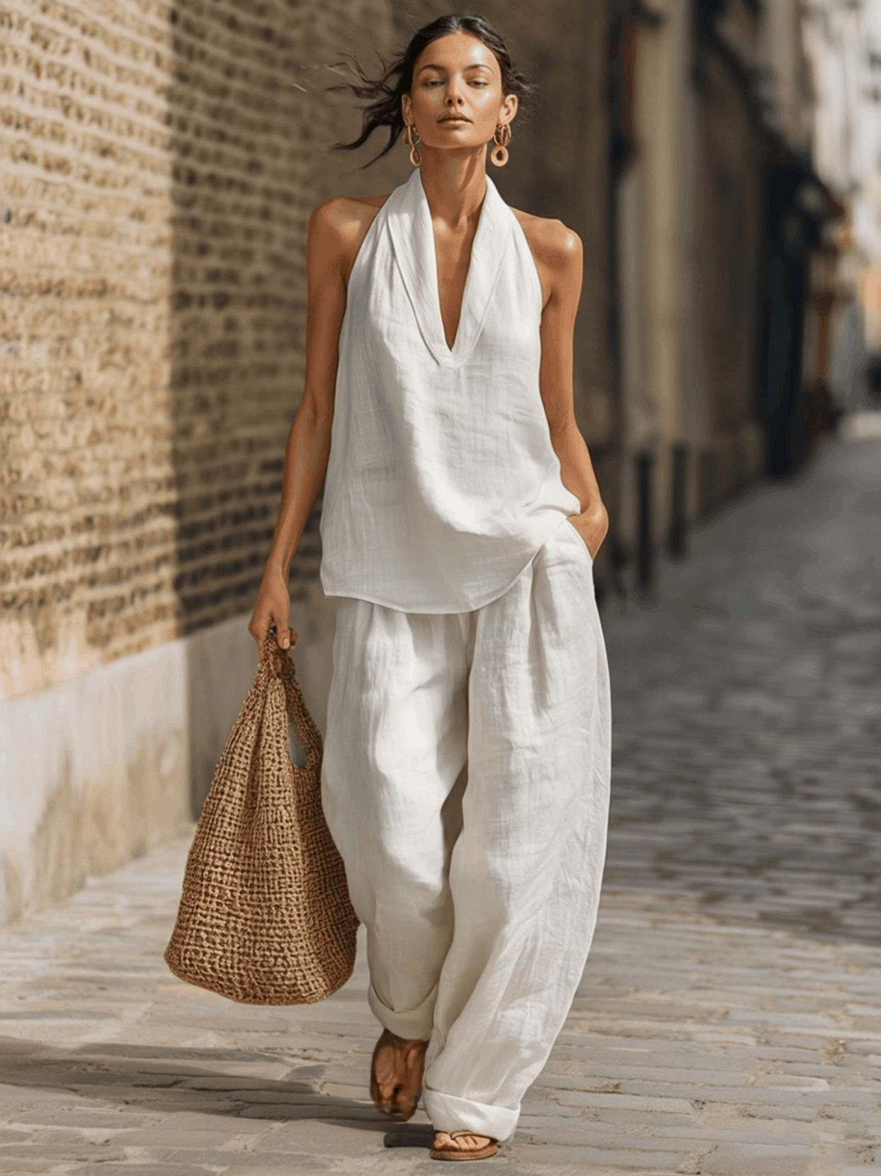 This Casual Urban Style White Linen V-neck Sleeveless Top and Wide Leg Pants Set offers an effortlessly chic look perfect for modern-day explorers. Crafted from high-quality linen, this set is designed to deliver both comfort and elegance, making it an excellent addition to any wardrobe.
