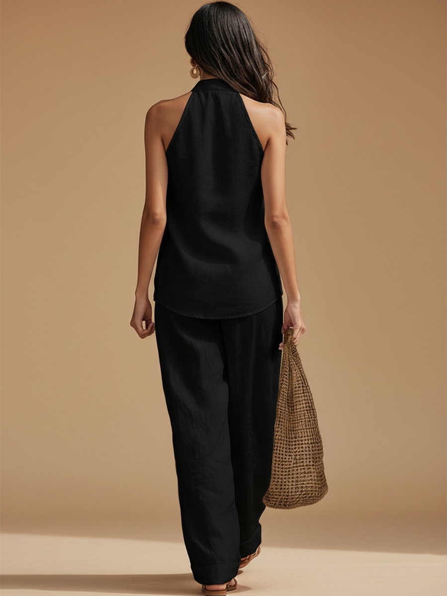 Pair this elegant set with statement jewelry for an upscale look or go for a more relaxed vibe by adding simple accessories. Combine it with stylish sneakers or wedge sandals to complete the ensemble. For cooler days, consider adding a lightweight jacket or scarf.